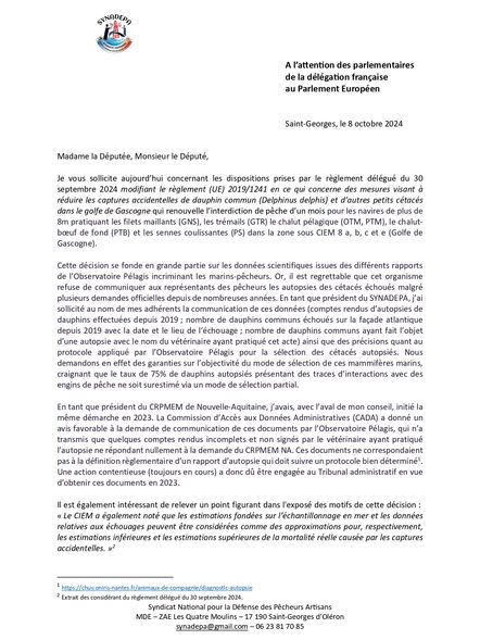 Ce texte démontre simplement que ces mesures, malgré les aides accordées en compensation du préjudice (encore heureux !!!) subi par la profession, ne sont qu'un moyen déguisé de nous imposer une surveillance toujours accrue de nos activités : VMS, caméras, dispositions de dissuasion accoustique, pingers, etc.